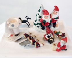 Tomtefigurer, ljuslykta, flaskkork, smörkniv etc