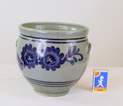 Liten blå vas från Höganäs. En vas med nummer