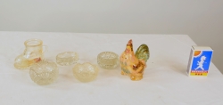 Fyra saltkar, en tupp saltströare och stövel